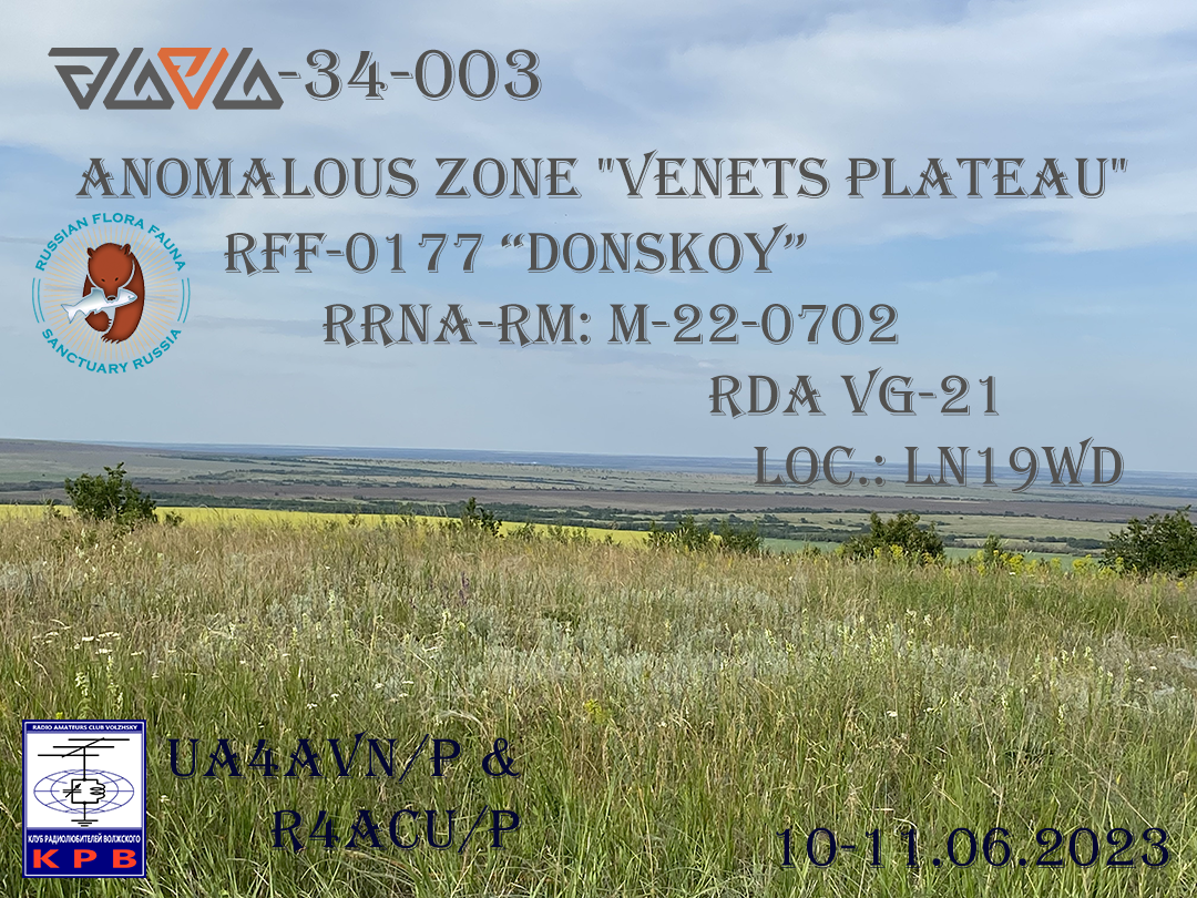 С 10 июня начинались летние дни активности любителей программы «Аномальные зоны России» - RAZA. Это событие совпало с желанием моего товарища - Андрея (R4ACU) куда-нибудь выехать. Мой друг рвался в поля!!! Неделя, как прошла от крайней моей экспедиции на «Румын-гору», ну что-ж, решил поддержать рвение Андрея. Прогноз погоды вроде позволял, поэтому в пятницу 09 июня, согласовав последние вопросы, мы были во всеоружии. Андрей хотел «оторваться» на УКВ, поэтому я ему предложил ехать на плато «Венцы» (250 метров над уровнем моря), расположенного на территории природного парка «Донской» (RFF-0177), Иловлинского района (RDA VG-21) Волгоградской области. Таким образом ехать собрались в тот же район, куда неделю назад я ездил с Юрой (R4ADD) - на «Румын-гору».