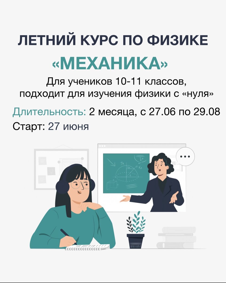 Хотите сделать весомый вклад в свои будущие баллы на ЕГЭ по физике уже сейчас? 27 июня начинается летний курс по физике «Механика» Промокод на скидку 20% действует до 27 июня, другие бонусы смотрите в карусели На курсе вы научитесь работать с векторами и их проекциями, строить, читать и анализировать графики, разберётесь с баллистическим движением, законами сохранения Это ваша мощная основа в подготовке к ЕГЭ на высокие баллы, не пропустите) Запись по ссылке на сайте https://www.fizikaal.ru/mehanika После оплаты на почту придет электронный чек и ссылка с доступом на платформу)