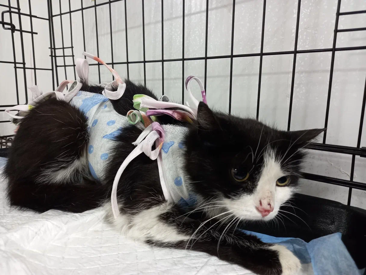 Здравствуйте, добрые люди! Расскажу про ту самую дикую и беременную #кошечку Люсю, что недавно у нас появилась на канале. её девочки ловили не так долго, сколько потом сама #киса билась об клетку и пыталась выбраться из заточения. Четверо суток #кошечка провела в стационаре после стерилизации, её нельзя было выпускать - дикая сразу убежит в подпол куда ни будь, а там грязь. Нужна была чистота. Место предоставила Татьяна. Все дни ухаживала за ней. "Она интересная такая. Я вот тут пока днём хожу, даю покушать - не притронется даже. Водичку еще пьёт, а есть - не ест. Поэтому ставлю корм ей на ночь - за ночь, когда тихо в клинике - она всё съедает. Пробовала днём выключать свет и уходить из стационара - всё равно не ест. Только ночью. " Люся за четыре дня успокоилась у Тани - та ей подмешивала успокоительное и с #кисой хоть как то можно было контактировать. Да, боится, вжимается в клеточку, но уже не кидается и не пытается выбраться. Так что есть шанс, что Люся перестанет так дичится т