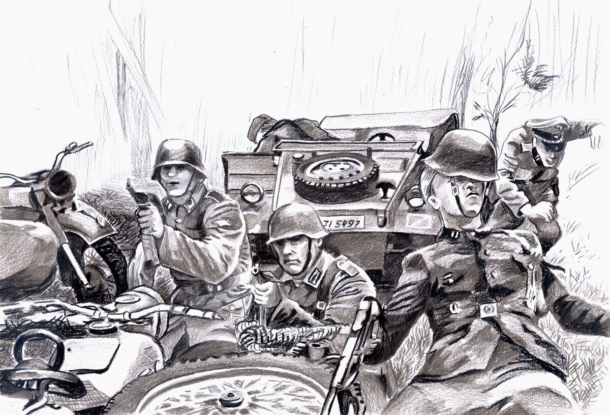 Гюнтер швыряет трубку, выходит из-под тентового полога, нервно закуривает. К раздражённому выражению лица добавилась тревожная озабоченность. Оно и понятно: так же, как и Рильке, Гюнтер не может найти рациональное объяснение эпизоду со странным, безостановочным проездом Карла через хутор в направлении «не пойми куда».