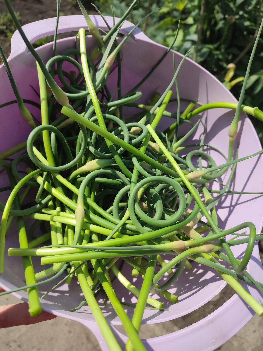 Я очень люблю лето за огромное разнообразие продуктов. Многие из них достаются мне бесплатно, выращиваю на своём огороде. Один из таких продуктов - чесночные стрелки. Из них я делаю блюдо, которое хорошо идёт и самостоятельно, и в качестве гарнира к мясу/рыбе. Обрезаем стрелки и промываем их. Решим на произвольные кусочки. Тут кто как любит. Я люблю покрупнее, сантиметров по 4-5. Тушим их на растительном или сливочном масле. Солим по вкусу. Когда стрелки будет практически готовы, добавляем пару яйц и перемешиваем. Получается вот такая вкуснота. Пальчики оближешь. Всё как я люблю - вкусно и очень бюджетно.