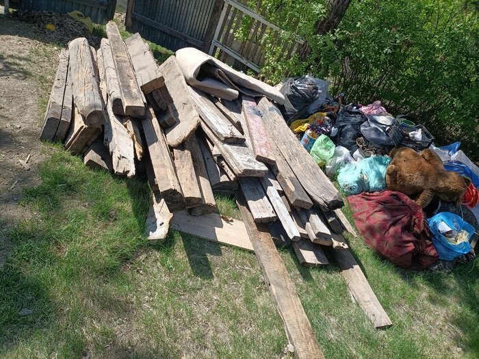 Причина по которой долго не было постов - беспорядок. Как на участке и дома - так и в голове. За полтора месяца - пришло понимание того, во что мы ввязались. И без плана - тут точно никуда. Дом сосет карман просто нещадно, но об этом в конце. Прошло полтора месяца. Что было сделано? Да немного совсем. Благодаря товарищу достал досок.надо их использовать, только вот куда.