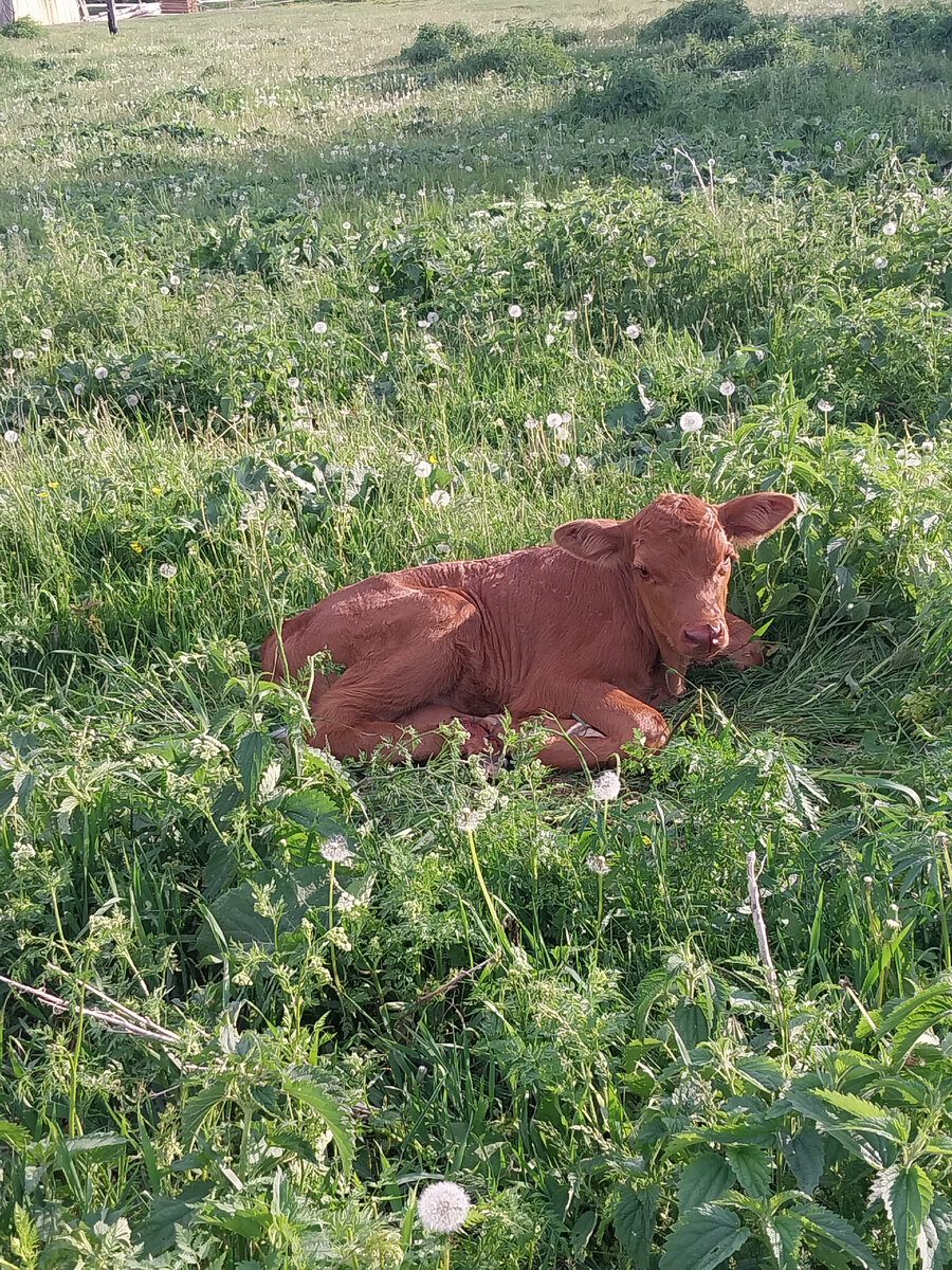 Всем привет! Уже наверное все знают, что муж занимается металлокопом, и я часто езжу вместе с ним. Вчера вечером поехали в соседнюю деревню, и неожиданно в траве на поле обнаружили телёнка. Он лежал, смотрел грустными глазками, весь закусанный мошкарой. Муж пошёл до деревни, благо все рядом. Оказалось, что прямо в поле вчера отелилась корова 🐄 . Но почему телёнок оказался один, так и не поняли. Хозяин нашёлся быстро, слава Богу мы оказались рядом вовремя. Спасли малыша. Вернулись домой, а тут такая картина. Чтение 📚 на лето никто не отменял. Бедняга, устал 😂 А как проходят Ваши будни?