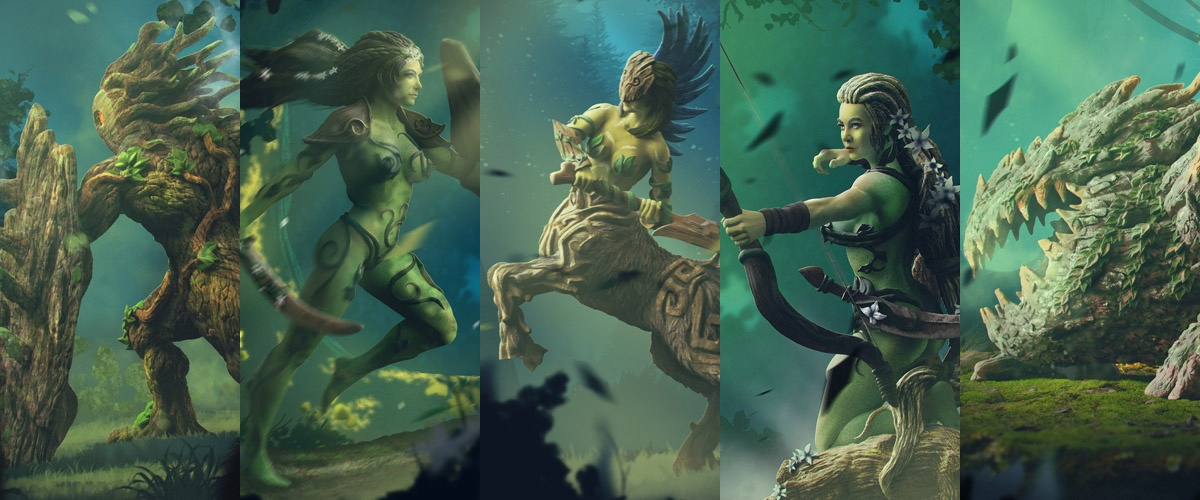 Десятилетия спустя, зеленые воины присоединились к своих древесным братьям, в стремлении отбросить и уничтожить чужаков. Облик лесных жителей постоянно менялся. Великий Дух Леса пытался найти оптимальную форму сосуда, в котором была бы заключена его ярость и остановился на тех, кого ныне называют «Дриадинтами». Прекрасные девы, чей прекрасный облик может заставить впасть в ступор даже опытного воина, расплатой за что ему будет лишь смерть. Лесные девы имеют удивительные свойства тел, их плоть становится полупрозрачной при движении. В эти моменты даже сталь и стрелы проходят сквозь них, не причиняя им вреда.