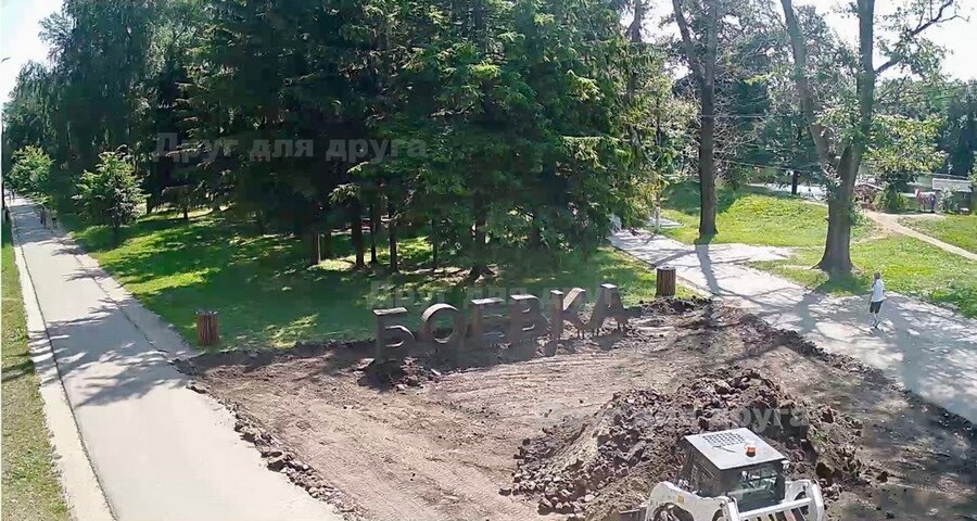 Перед буквами «Боевка», украшающими вход в парк, срезали газон. По всей видимости, там появится клумба.