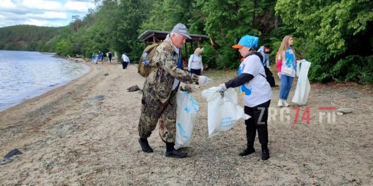Златоуст влился в экотечение. Мусору на береговой линии Тургояка устроили чистку