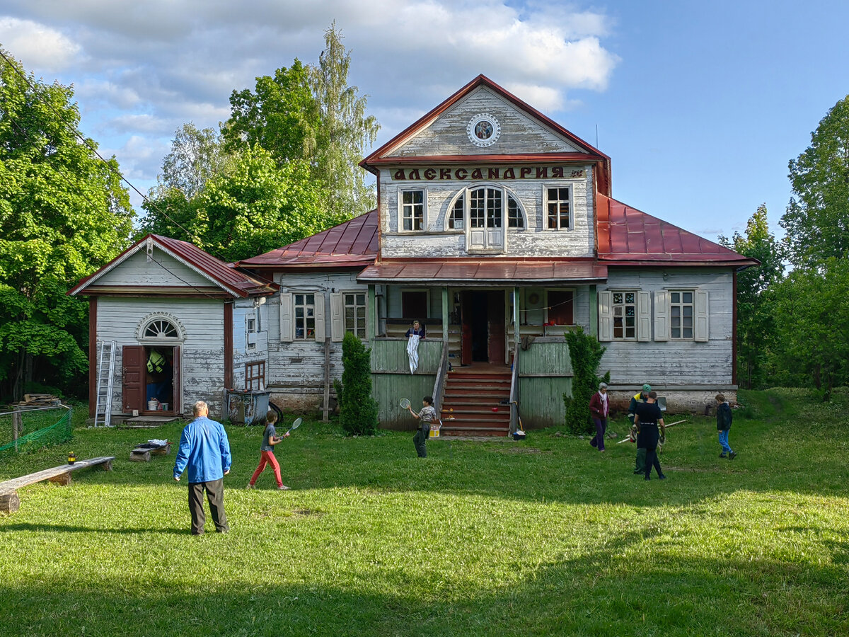 Как я понял, в тёплое время года в "Александрии" живёт православная община, которая следит за зданием, занимается благоустройством территории, выращивает овощи, фрукты и так далее.