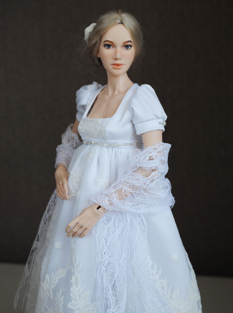 Очень люблю стиль Ампир. Более крупный формат куклы позволил платье сделать детализированным.