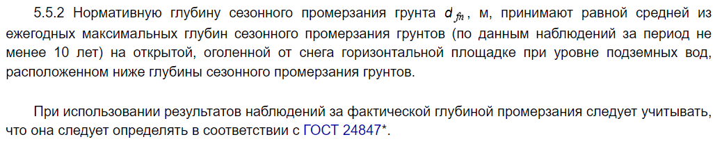 Нас интересует параметр - расчётная глубина сезонного промерзания грунта.