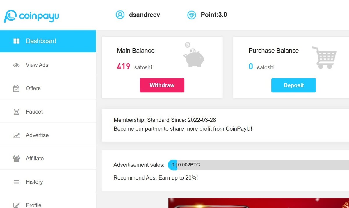 Друзья, всем привет, и сегодня у нас на обзоре сайт CoinPayU (партнёрский материал) на котором мы рассмотрим ряд способов для дополнительного заработка. Начинаем с раздела «Surf Ads», в котором нам за просмотр сайтов рекламодателей будут начисляться сатоши. Сатоши – это минимальная часть Биткоина и сто миллионов сатоши равны одному Биткоину. Нажимаем на ссылку и ждём, пока истечёт время, на открывшемся сайте находится не обязательно. После того, как мы собрали монеты в первом разделе, переходим в следующий, который отличается от первого тем, что после перехода по ссылке нам нужно находится на сайте рекламодателя, пока не истечёт таймер Посещаем все доступные для просмотра сайты и переходим в раздел со статьями. Также, по очереди открываем все статьи, ждём истечения таймера и получаем монеты. В статьях отдельный баланс заработанных сатоши. Заходим в раздел «Guide» > «Article Balance» > «Transfer», набираем на просмотре статей минимальное значение и переводим сатоши на свой основной бала