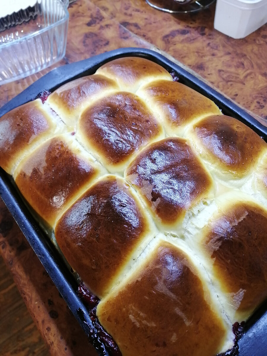 Поэтому есть повод испечь такие замечательные булочки. А потом с чаем или молоком полакомиться.