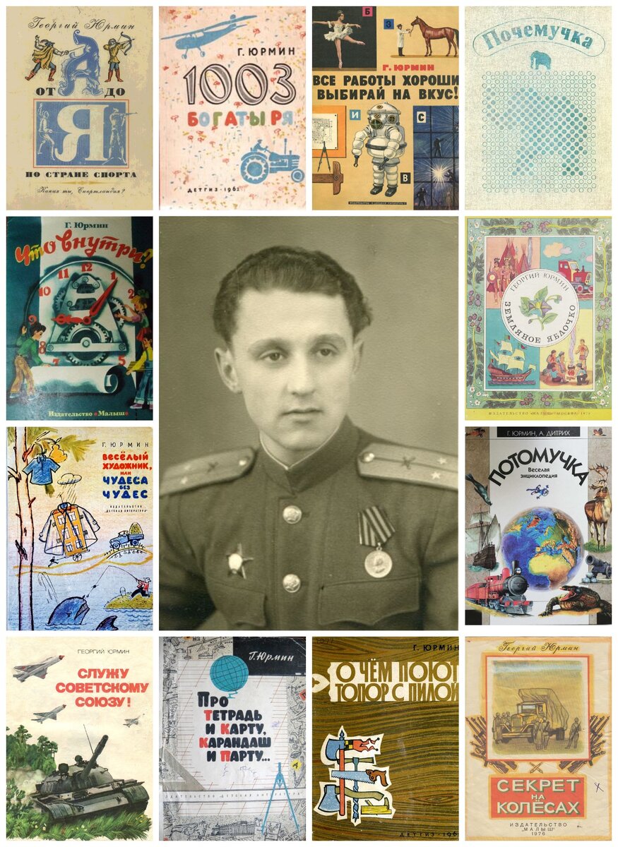 Георгий Юрмин (Юрий Альфредович Менакер; 22 июня 1923 — 21 июля 2007) — участник Великой Отечественной войны, детский писатель, автор книг «Почемучка» (совместно с А. Дитрихом и Р. Кошурниковой), «Мир вокруг нас», «Все работы хороши, выбирай на вкус!», «От А до Я по стране спорта. Какая ты, Спортландия?» и многих других.
