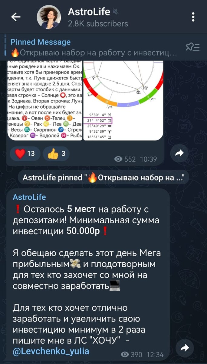 Upd через неделю - волонтерская поддержка ответила в Телеграме моей маме. Было сказано, что мошеннические посты с канала удалены, и завершены все активные сессии моего аккаунта на всех устройствах. Мол, можно заходить и пользоваться аккаунтом. Но войти пока не могу, потому что так же приходит код на какое-то другое устройство, как на прикрепленной картинке. А теперь сама история. Никогда не думала, что стану жертвой мошенников, но... Никогда не говори "никогда". Сейчас расскажу, о том, как целую неделю в моем Телеграм канале орудуют мошенники, разводя моих подписчиков от моего имени на большие суммы денег (от 50 000₽, мне известно уже о двух пострадавших). На прошлой неделе мне написала в Телеграм девушка Ирина, представивишись менеджером Wildberries. Предложила сделать рекламу маркетплейса у меня на канале AstroLife (https://t.me/levchenkoastro, 2800 подписчиков) Для этого мне нужно было выбрать любой товар, равный по стоимости рекламе на моем канале. О нем и нужно было рассказать с