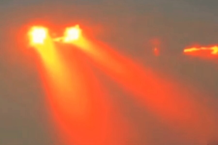 Две крупные молнии или два светящихся объекта расходятся в разные стороны и с разгона несколько раз сталкиваются друг с другом. Всё это действо сопровождается не менее странными звуками: