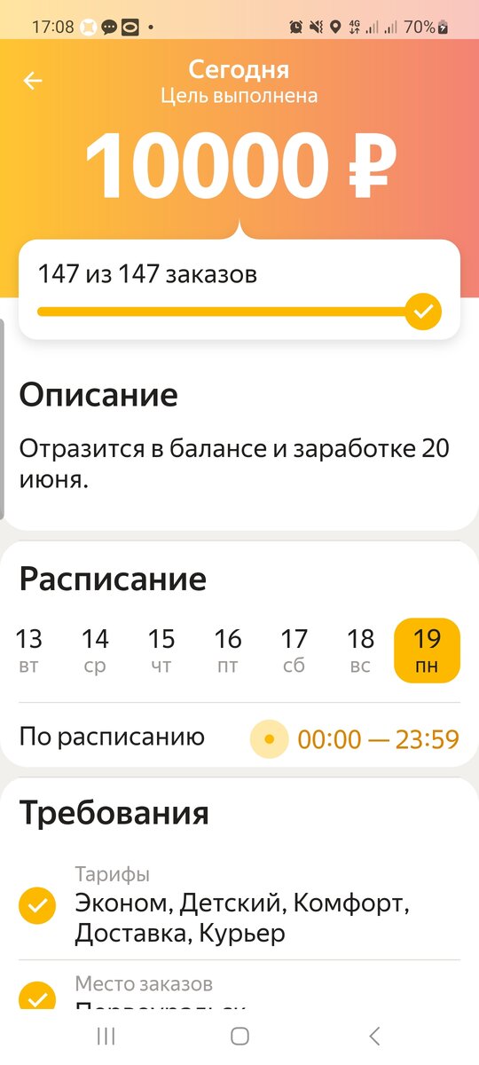 Всем привет, сегодня речь пойдёт не о том, какой яндекс плохой и заставляет нас с вами работать. Сегодня краткий гайд о том, как именно выполнять данный цели. Распределение времени Итак, самое главное, это распределение заказов по времени. Как многие делают и зря. Я также делал на первой цели. Не надо делить заказы на 7 дней и выполнять определённое количество. Допустим вам дали цель на 140 заказов. И вы решили делать по 20 заказов в день. Не надо так... Если работа идёт, идёт и идёт, то выполняйте пока не устанете. Может случиться все что угодно. На пару заказов больше Сделайте на пару заказов больше, не рискуйте. Все мы знаем по какому агрегатору работаем, да и просто никому особо верить нельзя... Поэтому обязательно делаем на 2 заказа больше. Рассчитывайте свои силы Обязательно подумайте сделаете ли вы эту цель. Каждую неделю, я делаю максимум 100-110 заявок. Но тут пару раз Яндекс дал цель на 150 заявок. Понимая, что уделить часов 10 лишних, заработаю дополнитель