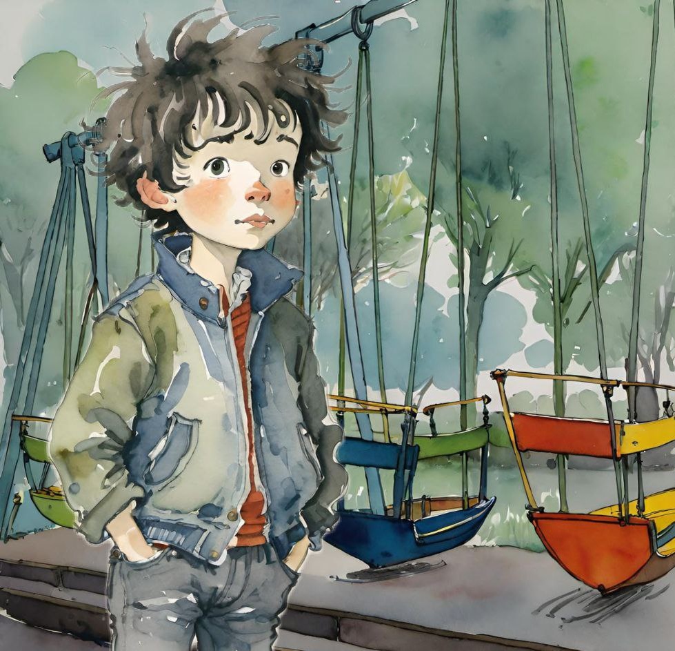 Было и правда не жарко. Лето ещё не вступило в свои права, и иногда случались очень даже прохладные дни. А по ночам бывали даже заморозки. Весна капризна и обманчива. Мальчик поёжился. На нем, кроме джинсовой курточки, ничего поверх футболки и не было. Он вздохнул, и снова посмотрел на качели.