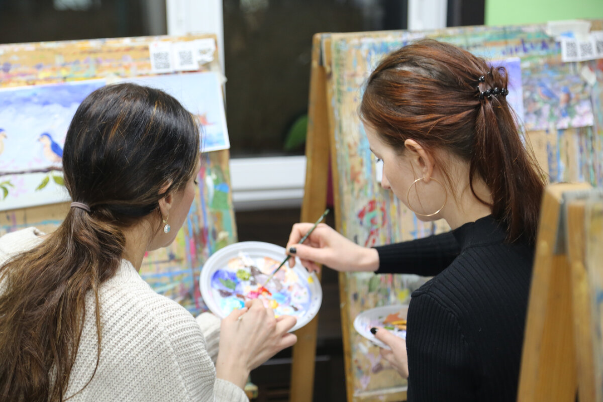 Первое, на что стоит обратить внимание - это две потрясающие изо студии Арт-гостиная: В этой мастерской проходит один еженедельный мастер-класс "Рисуем картину за 3 часа". Каждую пятницу под руководством профессионального художника Вы сможете нарисовать настоящую картину, приносить ни чего не надо, все входит в стоимость м/к Можно приобрести: