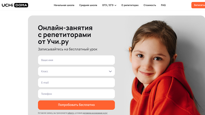 Учи дома – это онлайн-школа, где можно найти репетиторов для школьников. Учеба проходит дома в удобное время. Для занятий нужен компьютер, планшет или смартфон с микрофоном и камерой. С помощью сервиса можно подтянуть успеваемость в школе и подготовиться к ЕГЭ. 71% учеников Учи.дома поступают в вузы на бюджет – утверждается на сайте сервиса. Личный кабинет Учи.Дома Чтобы ребенок начал заниматься, придется зарегистрироваться на сайте. Для этого нужна электронная почта и номер телефона. В личном кабинете напишите имя ученика, в каком классе учится и выберите способ связи с сервисом: WhatsApp, telegram или по телефону. В разделе «Расписание» выбирайте предмет и записывайтесь на бесплатный пробный урок. На нем можно выбрать репетитора. Список преподавателей есть на сайте: можно выбрать нужный предмет и класс. Предметы для учеников младшей школы: английский язык, математика, русский язык, программирование, компьютерная грамотность. Интерактивные уроки длятся 30 минут, чтобы ребенок не