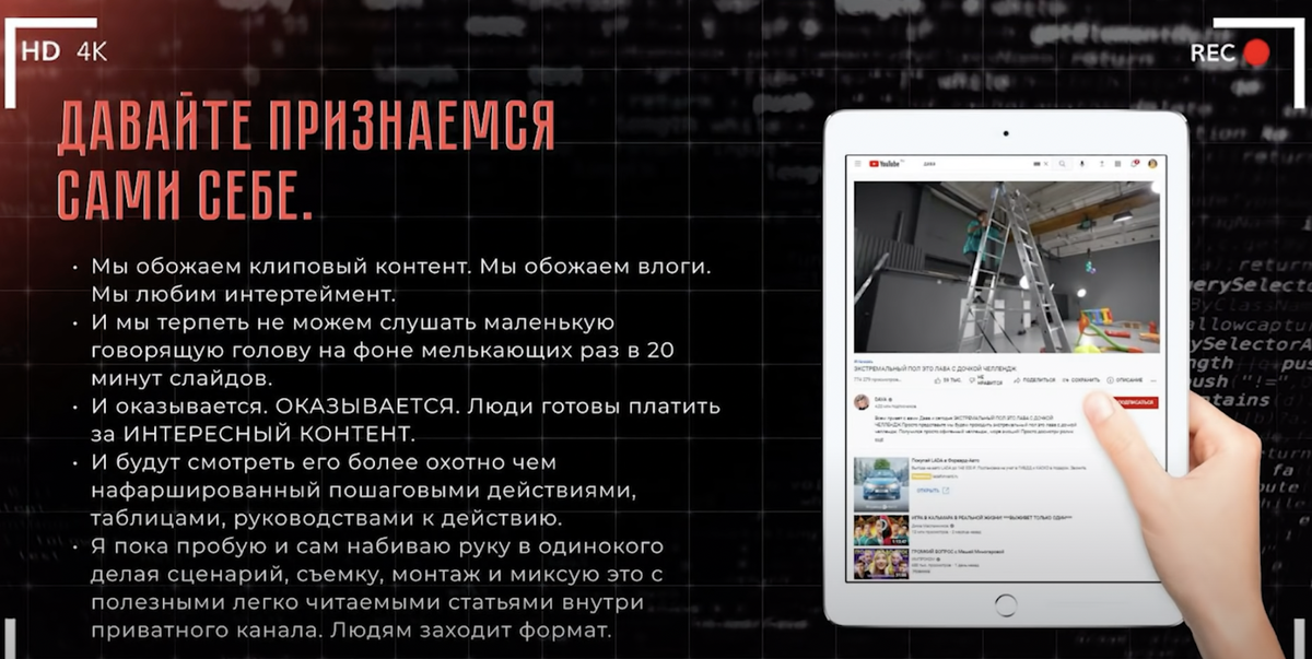 1) Самые большие деньги в инфобизе зарабатывают только блогеры. Потому что у них самая большая и лояльная аудитория. Только блоггеры миллионники делают миллиарды в онлайн-школах. Не было таких случаев (не считая Аяза (менеджмент)), чтобы на авто-воронке с холодного трафика люди покупали курсов на 1 млрд рублей. Всегда покупают люди у людей. P2P не B2C. P2P - взаимоотношения людей с людьми. Болгер - человек, клиенты - тоже люди. Разговаривай с ними как с людьми, а не клиентами. И чаще всего у блоггеров покупает кучу народу на большие чеки. Лояльная база - самый большой актив, который у вас может быть. 2) Поэтому. Надо заниматься контент-маркетингом в своей онлайн школе и делать 70% развлекательного контента и 30% полезного. Делать контент стабильно, дозировано, качественно и не бояться перекормить аудиторию. Главное, соблюдать правило 70 на 30. Есть золотая середина между развлекательным контентом и полезным. Не надо скатываться только в развлекательный или в полезный. 3) Когда ты даёшь