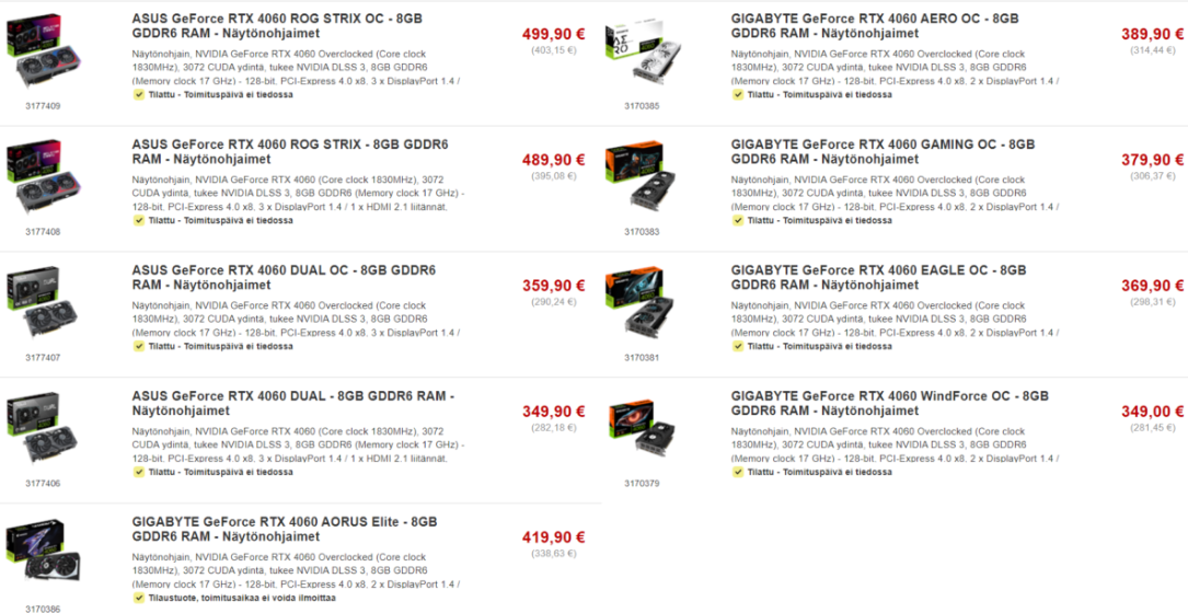 NVIDIA GeForce RTX 4060 предлагается в Европе по цене от 349 до 499 евро