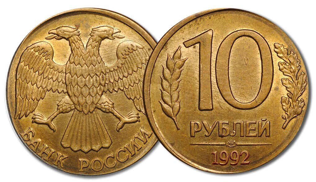 Посмотрев на эту монету, многие, кто помнит монеты 1990-х могут удивиться: 10 рублей 1992 года не серебристо-белого цвета, а медного. Но это в самом деле монета 10 рублей 1992 года. Но почему же она не серебристого, а медного цвета? Потому что если присмотреться к ней внимательно, не сразу, но заметно, что она меньше по размеру, чем обычная десятка 1992 года. Почему? Да потому, что это перепутка, монета, чеканенная не на своей заготовке, а на заготовке 1 рубля того же 1992 года. Такая перепутка стоит 30000 рублей. Надеюсь, моя статья вам понравилась, ставьте лайки и подписывайтесь на мой канал. С уважением, Владимир!