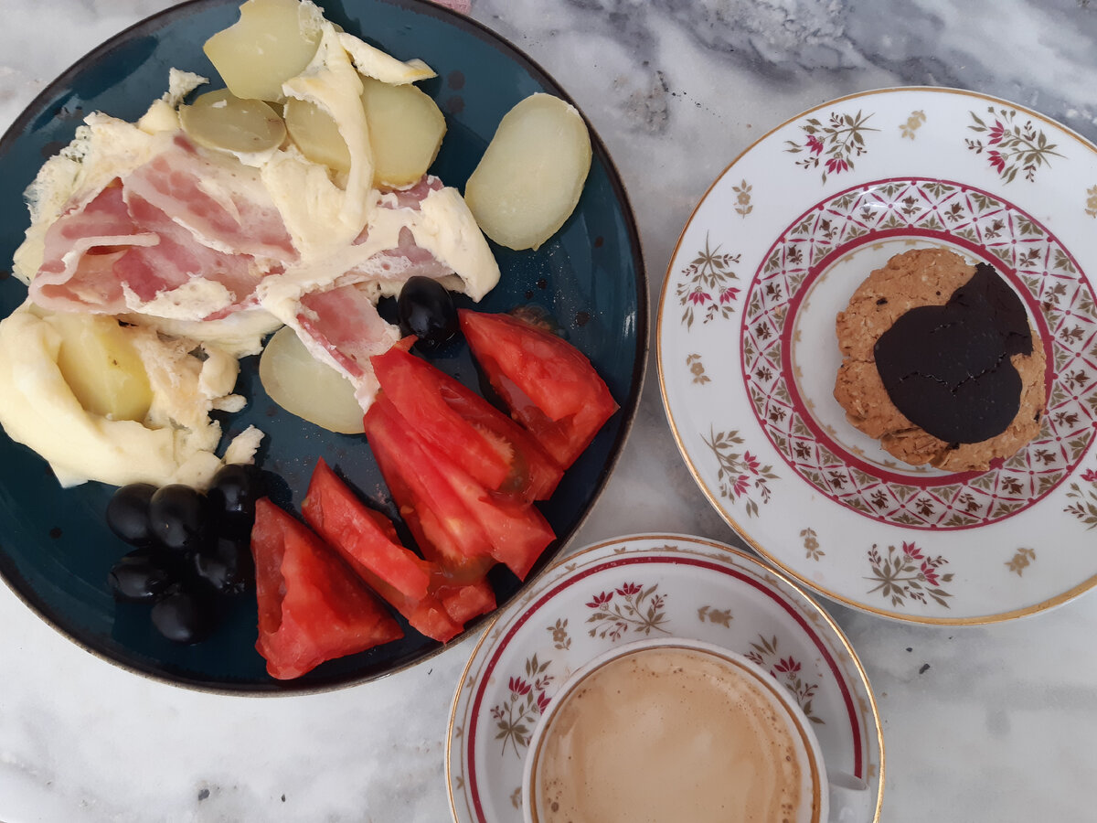 В июне продолжаем питаться экономно и вкусно на небольшую сумму. О запасах на начало месяца и расчете суммы на питание можно узнать ЗДЕСЬ Покупка продуктов 1 -Вкусвилл, Метро, Перекресток Покупка продуктов 2 -Смарт, рынок, WB, Озон, Вкусвилл Покупка продуктов 3 - Вкусвилл, рынок, КБ, Пятерочка, Смарт Все рецепты можно найти в КАТАЛОГЕ РЕЦЕПТОВ На завтрак сделала омлет с беконом и отварным картофелем. Чашка эспрессо и печенье овсяное Картофель варила для райты, но сделала сразу с запасом. Часть у меня использована на селедку под шубой, и еще пара картофелин - для омлета. Таким образом, картошку варила один раз, но она у меня пошла сразу в три блюда. На обед гороховый суп с курицей. К супу были зерновые булочки. Потом пила кофе с сыром Гойя, конфетка тоже присутствовала. Позже. Ужин у всех разный получился: я съела кусочек окуня с овощами, муж ел суп и немного селедки под шубой, сын - селедку под шубой.