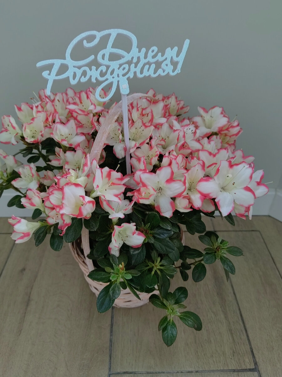 Доброе утро,уважаемые подписчики и гости.☺ Чуть меньше недели назад я подарила дочери на День Рождения такую веселенькую и нарядную комнатную азалию. Конечно же,я в курсе,что растение далеко не из простых,требует прохладного ,но в то же время светлого содержания,правильных поливов и повышенной влажности воздуха. Да и цветёт она сейчас совершенно не по времени,что уже стресс для азалии(летом она должна отдыхать,а радовать цветением в декабре-марте) Но я ,в принципе, не люблю срезанные цветы и букеты из них. По этой причине прошу не дарить цветы в букетах,предпочитаю горшечные.Сама тоже люблю преподносить цветы в горшках,если ,конечно,такой вариант одобряется. Жалко и больно смотреть,как цветы в шикарных букетах на глазах умирают...порой и сразу в день дарения.😓 Был у меня всего один неудачный опытов с комнатной азалией пару десятков лет назад,даже черенковать пробовала.Не долго музыка играла...больше даже и не пыталась покупать эту привереду. Многие считают подобные цветы одноразо