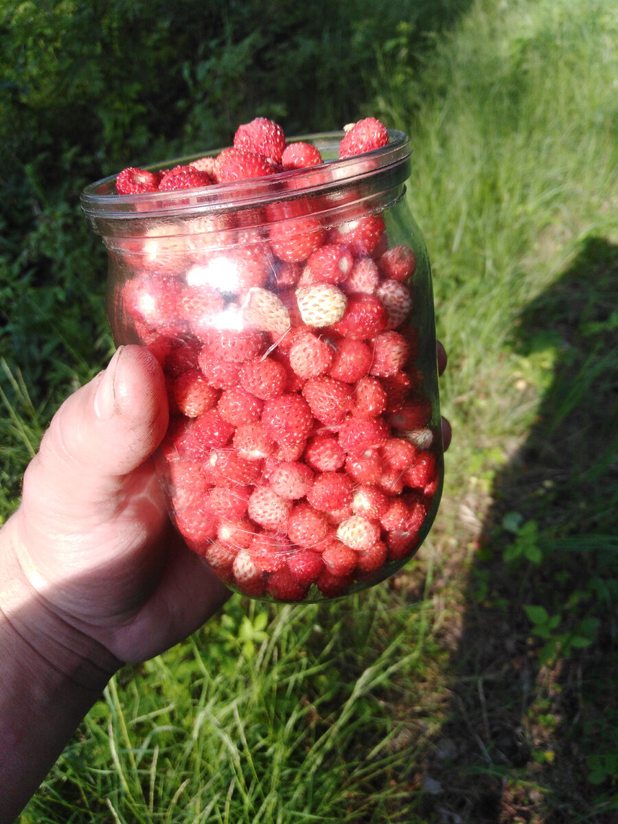 Решил сходить рядом с домом в лес, проверить есть ли в этом году какие нибудь ягоды. Буквально сразу стала попадаться зрелая земляника! Видимо ещё никто не собирал. На болоте тоже есть что собирать-зреет черника, но это в другой раз. Времени сегодня нет. В лесу очень мало влаги, грибной сезон возможно будет скуден. Около дома на валежнике нашёл вот такой гриб. Он съедобный, но так как один, экспериментировать не стал)