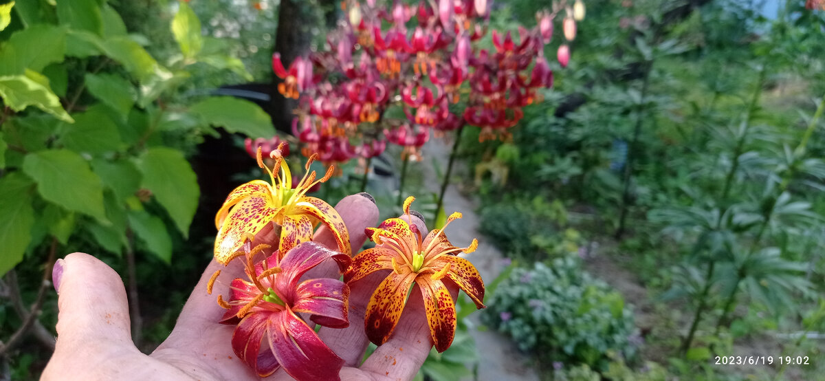 Почему так странно назвала статью? А вот и узнаете, прочитав. Как все поняли - мартагоны(лилия куреватая и ее гибриды) МОИ ЛЮБИМЦЫ. Не только мои, но и многих, давних садоводов с опытом и новичков. Не хочется о земном среди такой невероятной красоты, но они недешевы! Стараниями голландских производителей посадочного материала на некоторые из них цены реальны, но есть нюанс, разберемся! Вот они, доступные и недорогие, от голландских поставщиков, радуют разнообразием, яркостью, некапризностью и быстрым размножением. Это я показывала одной из подписчиц небольшие свои излишки. А подальше - целая полянка красного мартагона' Клод Шрайд'. Чем дальше тем больше интересы садовода расширяются, приобретаются все новые и новые сорта(хоть они и гибриды, но больше называем их СОРТОМ, ботаники, не ругайтесь😜 ), из разных источников. На этом фото - только два распространенных - оранжевый вверху 'Оранж мармелад' и внизу в центре - 'Террас Сити' остальные уже и от специалистов и от энтузиастов, далек