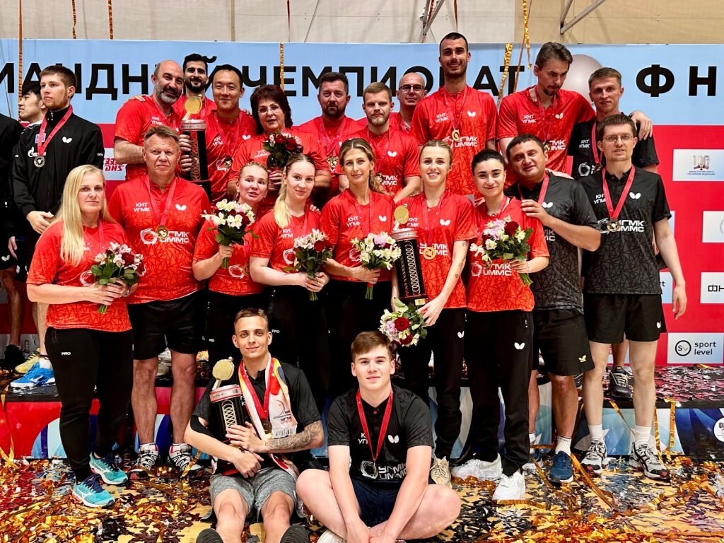 Две команды УГМК – мужская и женская – выиграли чемпионат России по настольному теннису, плей-офф прошел в Сочи. Обе команды заняли первые места в регулярном чемпионате, поэтому в плей-офф начали выступление с 1/2 финала. Как сообщили в УГМК, ранее ни одному клубу не удавалось выигрывать чемпионат России одновременно в мужском и женском составе. В итоге сезон 2022-2023 завершился для Клуба настольного тенниса УГМК с тремя кубками – двумя золотыми и одним бронзовым. Женская команда в обоих матчах переиграла «МГФСО-Москву» со счетом 3:0, выйдя в финал на «Самарочку». Судьба золота практически решилась в первом же матче. Ольга Воробьева, Элизабет Абраамян и Яна Носкова уступили соперницам всего один сет. Элизабет Абраамян в своей встрече повела со счетом 2:0, а теперь уже двукратные чемпионки страны довели ее до победы – 3:2. Теннисисты УГМК в полуфинале встречались с одноклубниками из команды «УГМК-Элем». Обе встречи завершились со счетом 3:0. Команда впервые выиграла бронзовые медали че
