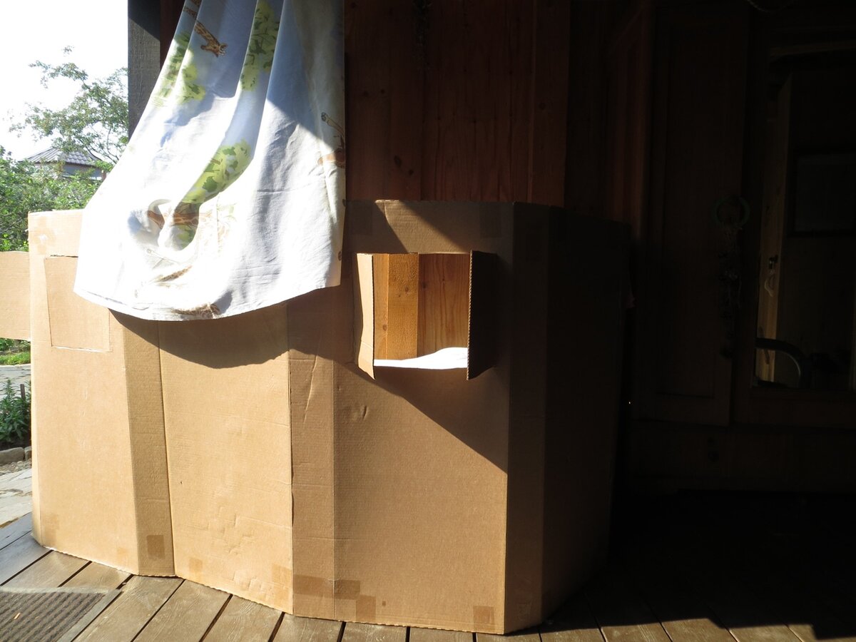 Для развития чувства осязания детям необходимо устраивать себе маленькие домики. В этом нам могут очень сильно пригодиться картонные коробки из-под техники и мебели. Вчера мы соорудили такой домик, склеили несколько коробок между собой на двусторонний скотч, вырезали резаком окошки, внутри дети утроили столик, кроватки, принесли одеяла, посуду, еду. Такие игры важны для детей, так как в домиках дети ищут некую защитную оболочку, которая немного больше их собственного тела. Самые маленькие дети тоже очень любят играть в такие игры.