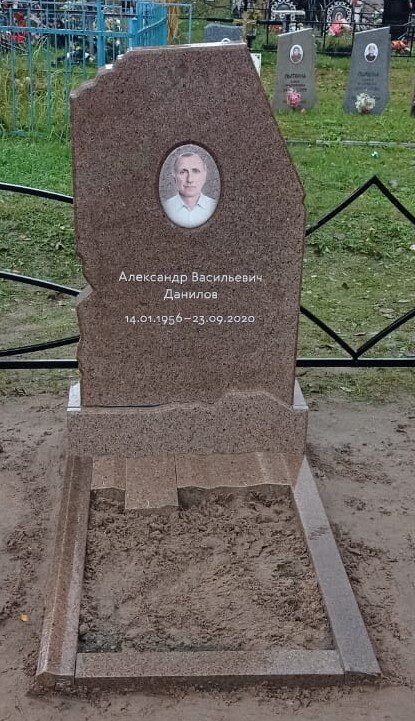 Наша компания изготовила и установила памятное надгробие на одном из кладбищ Московской области. Композиция состоит из фигурной стелы, массивной фигурной тумбы и цветника необычной формы. Материал изготовления: светло-коричневый Куртинский гранит. Оформление стелы выполнено с помощью фотокерамики (портрет) и лазерной гравировки (ФИО усопшего, даты рождения и смерти). Такой выбор формы надгробия и материала встречается нечасто и является оригинальным, нестандартным решением. Гранитная мастерская "Память М" - памятники на могилу от производителя. Каталог моделей представлен на нашем сайте, выбирайте размер, материал и варианты оформления в удобном калькуляторе.