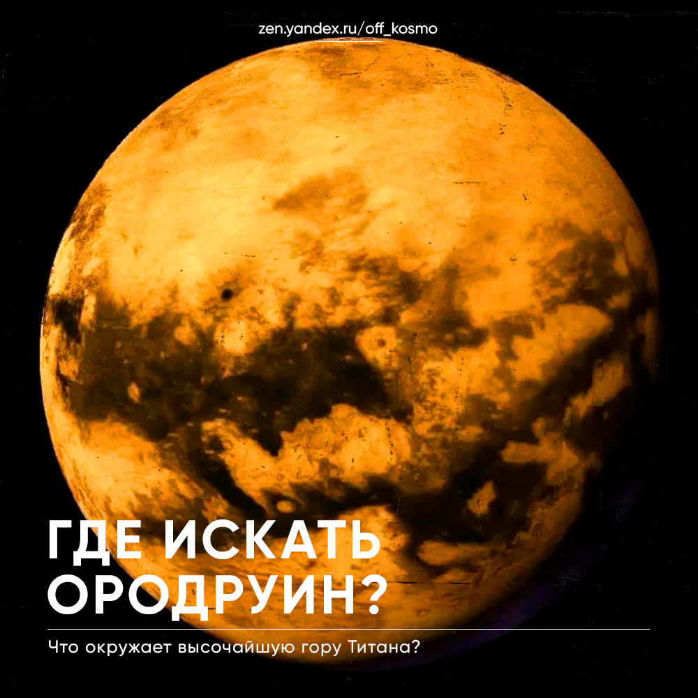 Примерно в 10 а.е. от Солнца расположен второй по размеру газовый гигант нашей системы под названием Сатурн. Он известен своими великолепными кольцами, однако, далеко за их пределами также расположено крайне примечательное небесное тело. Это Титан – крупнейший спутник Сатурна. Диаметр Титана составляет 5152 км, что на 5,6% больше, чем у Меркурия. При этом масса небесного тела сравнительно невелика – всего лишь 1,35⋅10^23 кг, что соответствует приблизительно 40% от меркурианской. Спутник движется вокруг материнской планеты по практически круговой орбите радиусом около 1,2 млн км и совершает полный оборот чуть менее, чем за 16 земных суток. Ородруин Облик крупнейшего спутника Сатурна изобилует контрастными пятнами. Некоторые из них отражают большую часть падающего на них света, другие же имеют относительно темную окраску. Одна из подобных областей расположена немного южнее экватора и носит название «Ацтлан». Здесь находится одна из высочайших гор Титана – Ородруин или Роковая гора. Она в