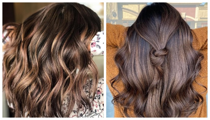 Оттенок темного шоколада + пряди карамельного цвета — сочетание достойное вашего внимания на все 100%.