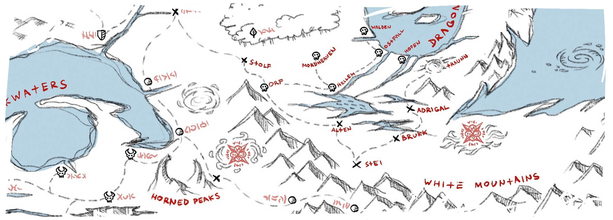 Истхолдские равнины⁴ — они же «Истхолд», крупный регион, находящийся к востоку от Весторна. Здесь находятся суровые государства, выживающие в практически не пригодных для жизни равнинах, пустынях и пустошах.