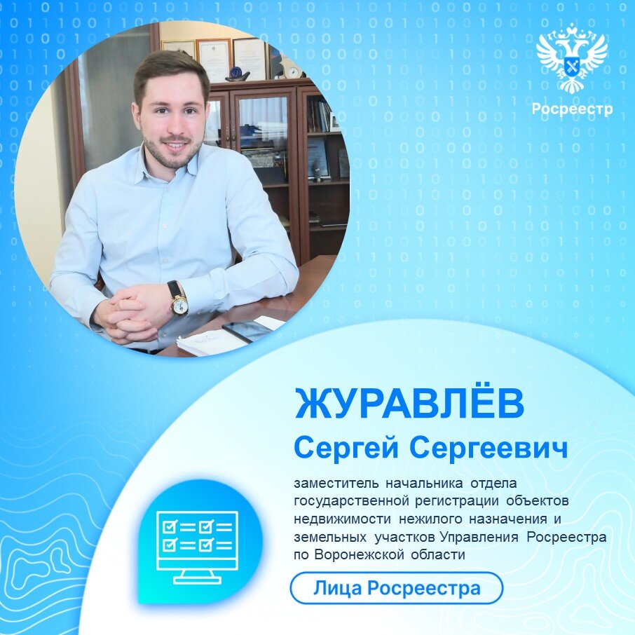 В рамках рубрики «Лица Росреестра» в этот раз мы расскажем о Журавлёве Сергее Сергеевиче, заместителе начальника отдела государственной регистрации объектов недвижимости нежилого назначения и земельных участков Управления Росреестра по Воронежской области.