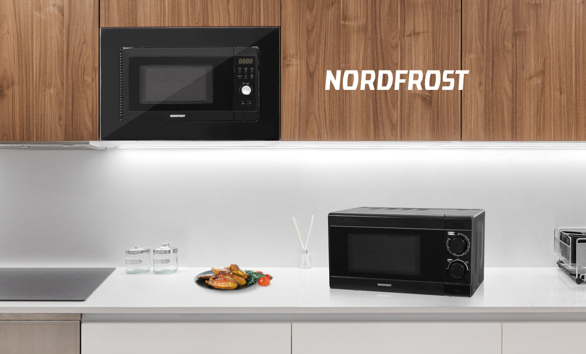 NORDFROST предлагает отдельностоящие и встраиваемые микроволновые печи мощностью 700 Вт с объемом камеры 20 л и пятью уровнями мощности. Внутреннее покрытие выполнено из эмали легкой очистки.