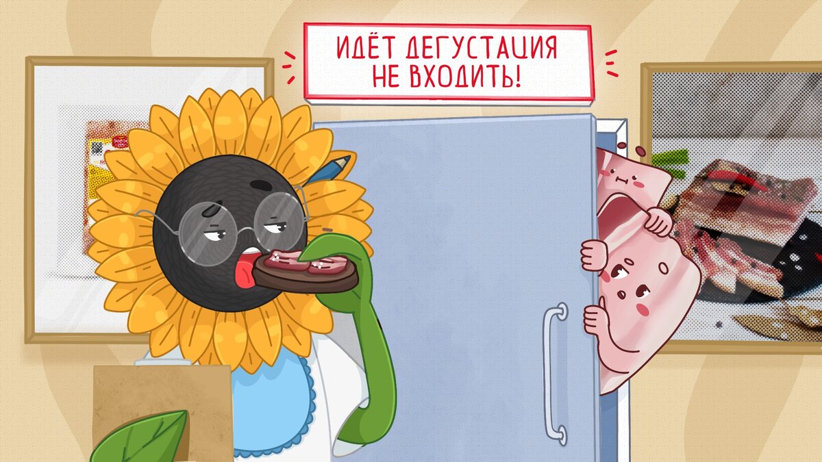 Подсолнух — главный эксперт по качественным продуктам. Стандарты у Подсолнуха высокие: он регулярно наведывается на производства и дегустирует продукты от разных производителей.