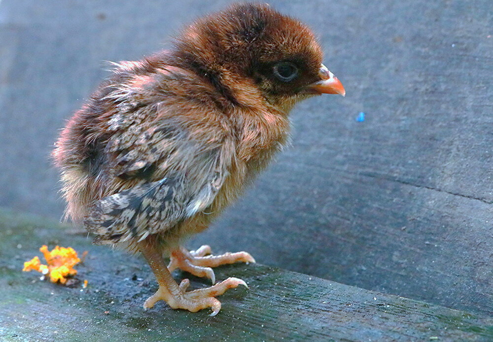 Вернёмся к наседке. Она накидала под себя штук 5 яиц. И ещё штук 10 подкинули ей в гнездо другие курочки, которых я стал называть кукушками. А может и не 10 а 20, кто бы их считал. В общем, яиц в гнезде было много. И вот, момент истины, а я с температурой. Я и не заметил, что цыплята стали появляться на свет. Как обычно закрыл на ночь кукушек с клушей. Утром выпустил, и мне показалось, что куры слишком сытые и возбуждённые. Зерно клевать не стали. Всё бегали по вольеру, что-то искали... Когда я заглянул к наседке, по ней уже ползало два цыплёнка. Один сидел прямо у неё на голове. Другой на спине. Я обрадовался. Попытался их накормить и напоить. Заодно убедился, что больше никого живого в гнезде пока нет. Однако, мне показалось странным, что и некоторых яиц тоже нет. Думать о том, куда они делись я не смог - грипп отбил у меня способность к аналитическому мышлению. Я зашёл домой с хорошим настроением. Я думал о том, как радуются курочки что у них теперь есть детки. Все радуются. И клуша и кукушки. Это ведь их общие детки.