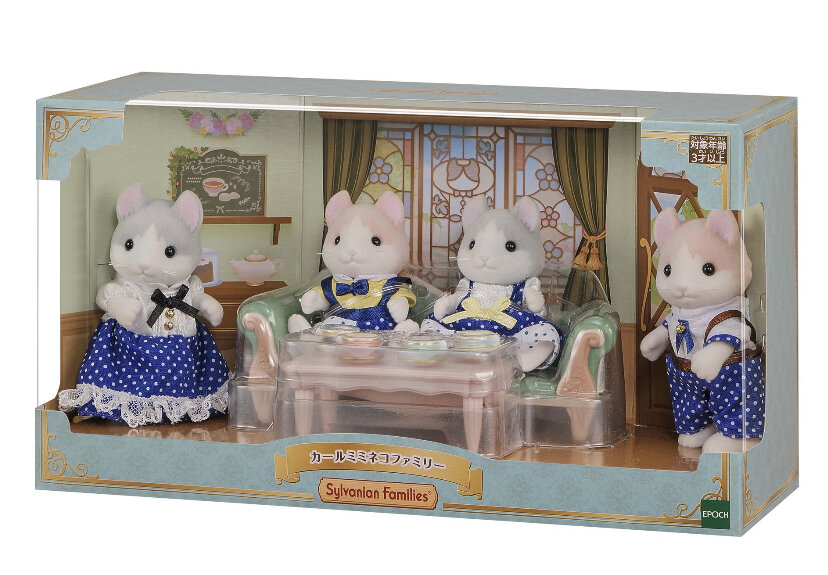 Не успели мы обсудить семью тюленей, как производитель уже анонсировал новую семью. Итак, новинка из серии «угадай, кто мы». Скажу честно, я не сразу поняла, что это за семья. Перевод подсказал, что какие-то коты. Знающие люди даже узнали породу. Оказывается, это американские кёрлы. Особенность породы - интересно завернутые уши. Их вполне удалось передать. Но все-таки не могу сказать, что в фигурках сразу угадываются кошки. Котов можно принять за мышей или хомяков. Я вообще сначала решила, что это волки)) Семья выйдет 15 июля. Хорошо, что производитель не стал заниматься ерундой и разбивать семью на кучу отдельных наборов, так что перед нами почти классический вариант с родителями и подростками. Почему «почти»? Потому что в набор добавлены аксессуары - столик, кушетка и посуда. Полный набор выглядит вот так. Я не люблю фэмили луки у Сильванов. Этот подход кажется мне читерством и нежеланием дизайнеров шевелить извилинами. Симпатично смотрится платье мамы. Платье дочки тоже можно