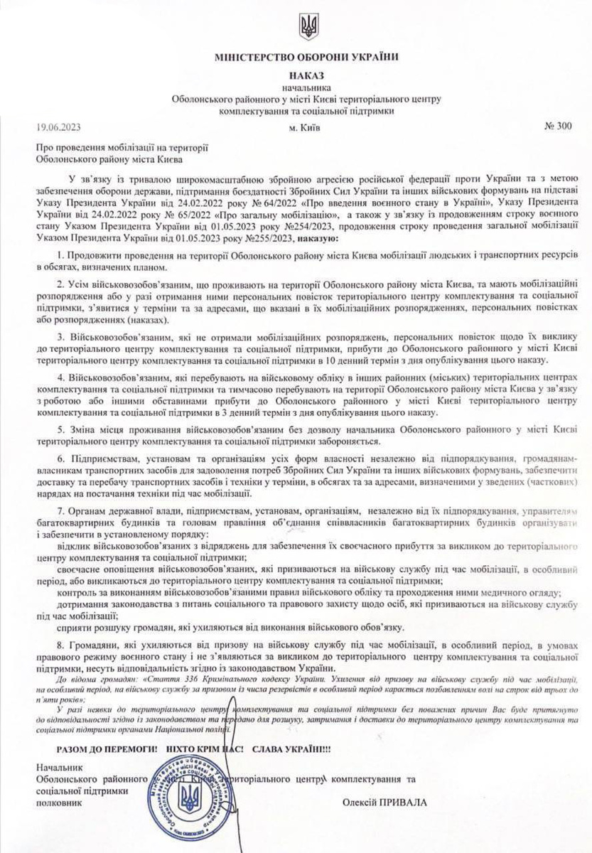 В Оболонском районе Киева объявили мобилизацию военнообязанных горожан — даже тем, кто не получал повестку, нужно явиться в местный военкомат. В случае, если киевляне, попадающие под мобилизацию, не исполнят это требование, они попадают под уголовную ответственность.