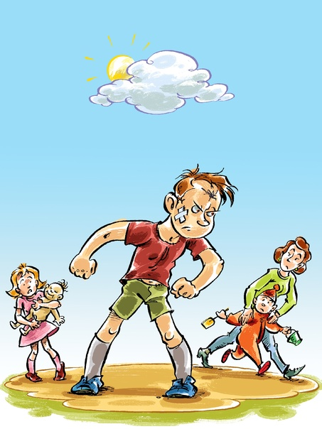 Доктор — его роль целесообразнее взять на себя взрослому. Трусливый — сидит дрожит и стонет. Как только Доктор или кто-то из посетителей обращается к нему с вопросом, зажмуривает глаза, закрывает голову руками и начинает тихонечко причитать: «Ой, боюсь!» и т. п. Нетерпеливый — норовит проскочить в кабинет врача без очереди. В общем разговоре всех перебивает, то и дело смотрит на часы, ходит взад-вперед по коридору, торопит Доктора и других детей и т. п. Упрямый — игнорирует просьбы других, поступает назло. Например, его просят подвинуться, чтобы всем было удобно сидеть, а он даже не пошевелился; его просят снять в помещении куртку, а он, наоборот, надел еще и шапку; его просят не петь, т. к. кругом больные, а он поет еще громче и т. п. Хвастливый — каждому сообщает, что он не боится никаких процедур, никакого лечения. Например, к стоматологу ходит с радостью, горькое лекарство пьет не поморщившись, кровь из пальца готов сдавать хоть каждый день, а уж про уколы и говорить нечего — пустяки, их боятся только трусы. Но как только подходит очередь Хвастливого, он заметно робеет и т. п. Капризный — постоянно ноет, все время чем-то недоволен: то ему жарко, то ему хочется пить, а на просьбу посетителей не скулить и не портить всем настроение начинает громко и безутешно плакать и т. п. Застенчивый — сидит тихонечко в сторонке на краешке стула. На обращенные к нему вопросы: «Как тебя зовут? Сколько лет? Что болит?» — молчит, испуганно на всех смотрит и все сильнее забивается в угол и т. п.