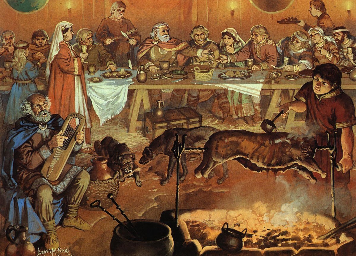 Византийский медик на службе Теодориха Великого, Антим, автор "Размышлений о пище" весьма пренебрежительно отнёсся к увлечению варваров жареной пищей. По его мнению, варёная еда была более здоровой. Также неодобрительно было поедание франками животного сала, сырого и жареного, употребление большого количества холодного молока. Любовь к сливочному маслу тоже им порицалась. Христианская церковь также считала ячменное пиво напитком почитателей Одина и древних германских богов. Этих небольших сведений вполне хватает, чтобы понять, что варвары, покорившие Галлию, строили свое кулинарное искусство вокруг вкусной, но не всегда полезной триады : мясо-пиво-сало. Для римлян и романизированных галлов такая диета казалась слишком грубой. Основой питания германской элиты было мясо крупной дичи, пойманной на охоте, или домашнего скота в повседневности. Мясо дополнялось луком, чесноком и редкой, а также разными кашами. Крестьяне были более консервативны, и с веками не изменяли привычкам, оставив