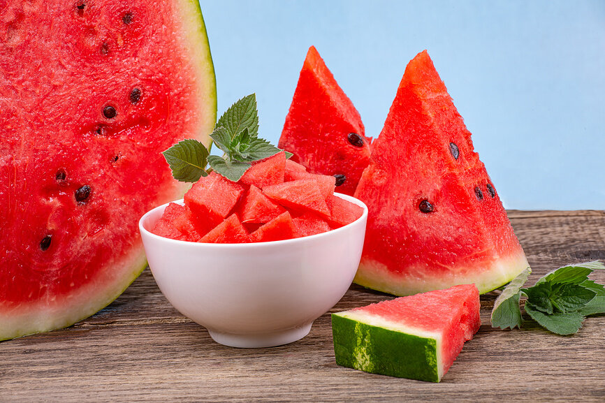 Арбуз — отличный выбор для жарких дней! В первую очередь потому, что он сочный и низкокалорийный. Чаще всего в магазинах мы встречаем арбузы со светло- или темно-зеленой кожурой. Как определить, что арбуз сладкий и спелый? Как выбрать лучший арбуз среди множества? Можно ли есть семечки? Арбуз — питательные свойства Арбуз родом из Азии, но он также стал очень популярен по всему миру. Плод на 90% состоит из воды. Помимо воды, онт акже содержит большое количество сахара, витаминов и минералов, таких как: Как проверить, что арбуз спелый и сладкий? Темно- или светло-зеленый? Оба могут быть одинаково сладкими. Если вы не собираетесь есть арбуз сразу, лучше купить плод целиком. Чтобы убедиться, что он созрел, посмотрите на нижнюю сторону плода. Вернее, есть ли белое пятно на дне арбуза. Чем оно больше и темнее, тем слаще будет арбуз. Форма арбуза и его вкус Еще один совет, который вам понадобится при выборе арбуза — это его форма. Круглый плод будет вкуснее продолговатого. Последний будет вод