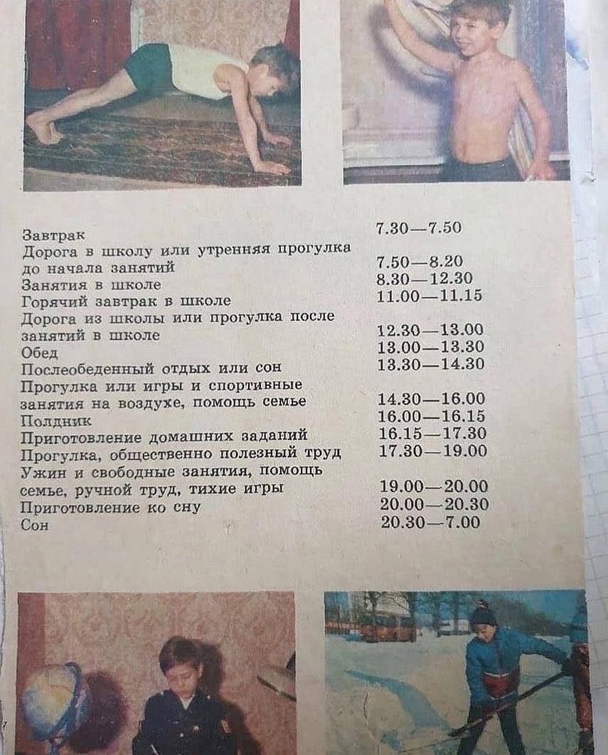 Распорядок дня советского школьника.