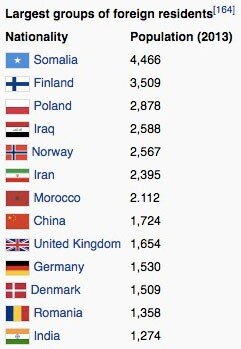 Раз уж я начал рассказывать о Швеции, то расскажу ещё и про город Гётеборг, второй по величине в Швеции. Перед поездкой зашел в Википедию немного прочитать о нём и с большим удивлением узнал, что большинство иностранных граждан, проживающих там – это сомалийцы! Да, обошли даже финнов. Никогда бы не подумал, что сомалийцы будут в европейском городе первыми по численности после местного населения.