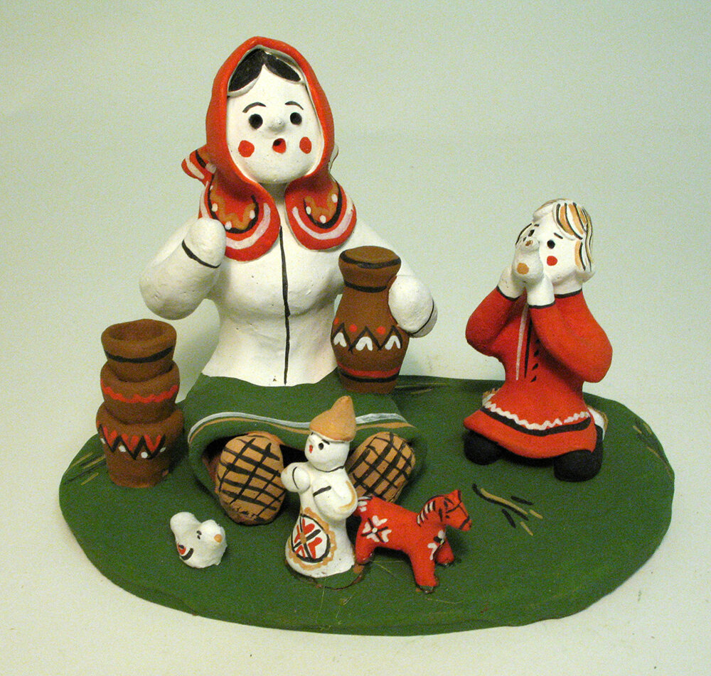 Музейная коллекция декоративно-прикладного искусства включает 368 предметов. Основа собрания — большая коллекция русских народных глиняных и деревянных игрушек, игрушек-свистулек из разных известных в России и за ее пределами центров художественных промыслов. Но сегодня об игрушках их двух регионов. Каргопольская игрушка — народный промысел из окрестностей города Каргополь Архангельской области. Эта самобытная игрушка отличается архаичностью и символичностью образов, наивной условностью лепки и примитивной, но живописной раскраской в 2—3 цвета. Чаще всего это одиночные монументальные, неподвижные фигурки, которые лепятся из одного куска глины, налепных деталей немного. Формы предельно упрощены. Символика росписи игрушек: крест, круг — солнце, волнистая линия — вода, горизонтальная линия — земля. Тверская (торжокская) игрушка — народный промысел из г. Торжок Тверской области. Отличительная черта этой игрушки — рельефные украшения в виде маленьких чешуек и оборок, ярко расписанные яркими
