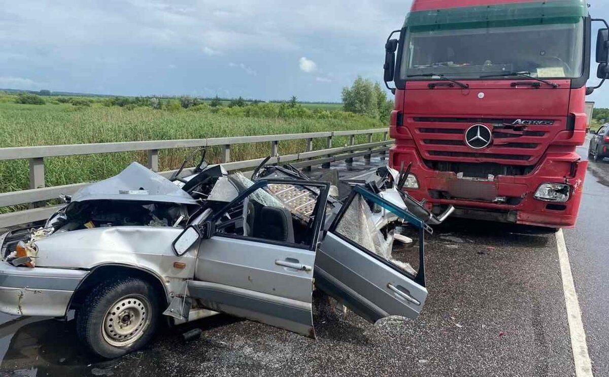 Авария произошла вчера, 30 июня, приблизительно в 14:00 на 655-м километре автомобильной дороги М-4 "Дон" в Воронежской области. Согласно предварительным данным, автомобиль "Мерседес Актрос" с полуприцепом, за рулём которого сидел 61-летний ростовчанин, ехал со стороны Москвы в направлении Ростова-на-Дону. Нарушив дистанцию до впереди ехавшего автомобиля ВАЗ-21140, управлял которым 62-летний местный житель, он столкнулся с ним. Затем он столкнулся ещё с автомобилем ГАЗ-331061, управляемым 36-летним ростовчанином.