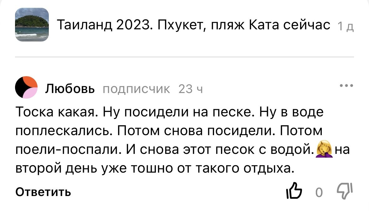 Написали мне такой комментарий на днях: Для меня немного странно читать такие комментарии, но я понимаю, что не все люди мыслят как мы. Если вам скучно каждый день ходить на пляж, есть и спать, то в этой статье я расскажу как мы делаем разнообразнее свои будни. Ну во-первых, у нас ребенок, который не дает скучать😀. Она не может сидеть или стоять на одном месте, поэтому даже находясь на пляже мы роем бассейны, строим башни и бегаем по песку. Мы не сидим на месте и не лежим, получая солнечные ванны. А если серьезно, в Таиланде полно красивых мест и достопримечательностей. Нужно просто открыть карту или полистать интернет. А еще есть полно интересных блогов, которые созданы для того, чтобы показывать вам эти места и как до них добраться. Можно поездить по смотровым площадкам, подняться к Большому Будде, на Пхукете много разных парков, где можно посмотреть слонов, тигров, обезьян, птиц. Можно съездить на разные райские острова. Просто погулять по городам Пхукета. А еще разные красивые хра