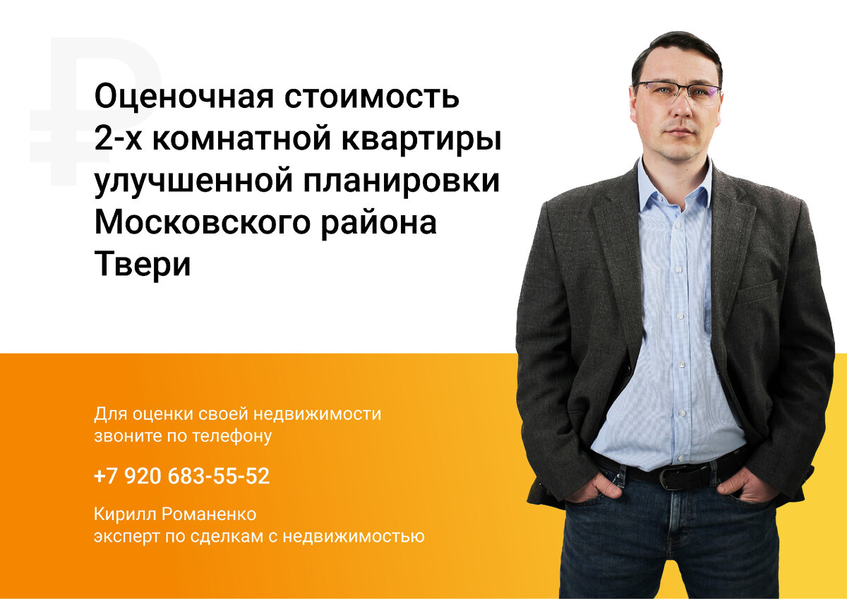 Улучшенной планировки (50-60 м2, с кухней 8-9 м2) Московского района Твери Средняя цена предложения: 1 м2 = 79 700 р. 52 м2 = 4 160 000 р. - Средняя цена продажи: 1 м2 = 74 000 р. 52 м2 = 3 870 000 р. #ценаквартиры Цены на недвижимость зависят от множества различных факторов, вплоть до психологического настроя продавца и покупателя. Поэтому до начала продажи можно лишь определить «коридор», в котором с большой вероятностью находится стоимость вашей недвижимости. И для более точного определения этого «коридора» позвоните мне: +7-920-683-55-52